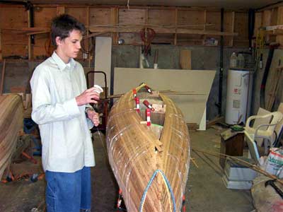 the holes left will be concealed by the gunwales. Apply glue