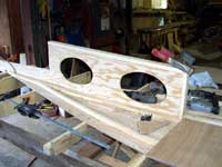 The pieces on either side of the centerboard trunk are the seat risers. They will form watertight compartments that will add a considerable safety factor to the boat. |