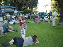 Camp #1 Korth’s Pirate’s Lair Marina; Pete gives the evening briefing, describing the next day’s route. |