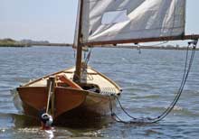 Another sharpie-skiff, this one 21’ and double-ended. Reputed to be the fastest boat in the fleet. |