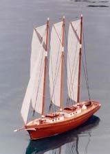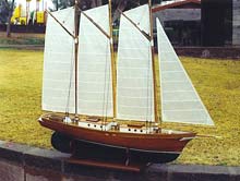 Dennis Desprois hails from the US state of Arizona and is a man of a great many talents and interests. A producer (to order) of replica schooners of which two examples are shown (above), a Seawind Class National race Champion, a maker of own brand (Walrus) for a wide variety of model yacht sails, a manufacturer of his own design Footy boats, a highly skilled photographer and an artist who late last year held a successful one-man show.