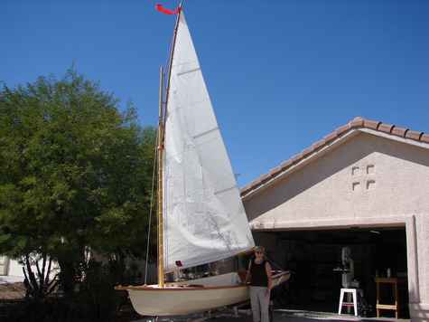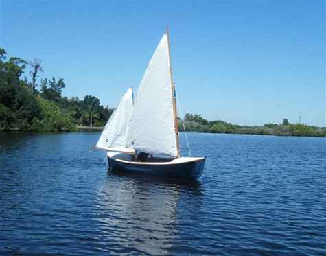 Here is a pic of Dolphin my latest design/build project, after I finished up the sail rig and hoisted the sail for the first time last weekend...