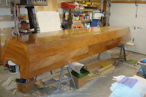 Attached is a pic of the 19-foot Larsboat. Decks and finishing are all that remain on the main hull.