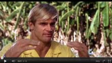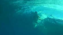 By the way, this clip will show you where the Blue Sway sequences were shot. It's a place in Tahiti called Teahupoo (pronounced Chao-poo). When the Blue Sway stuff was shot the reef wasn't getting the same kind of massive pump that is in the Laird Hamilton clip, but it does illustrate the proximity of the reef to the breaking wave that is coming out of wild and deep Pacific Ocean swells. A dangerous spot when it's huge, as I'm sure you can imagine. I'd be watching from the safety of the nearby channel. That wave is just too damn scary to consider... even when I could surf well. Maybe another life. Video One and Two. This still shot gives you an idea as to how much water is being pushed onto the reef. I've heard it described as the entire Pacific Ocean and that seems appropriate. The white patch is the shallow part of the reef being exposed as the swell sucks all the water off the edge of the island as it pitches up. Less than fifty feet out from the wave face, the water drops to something like 1000 feet deep.