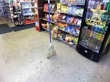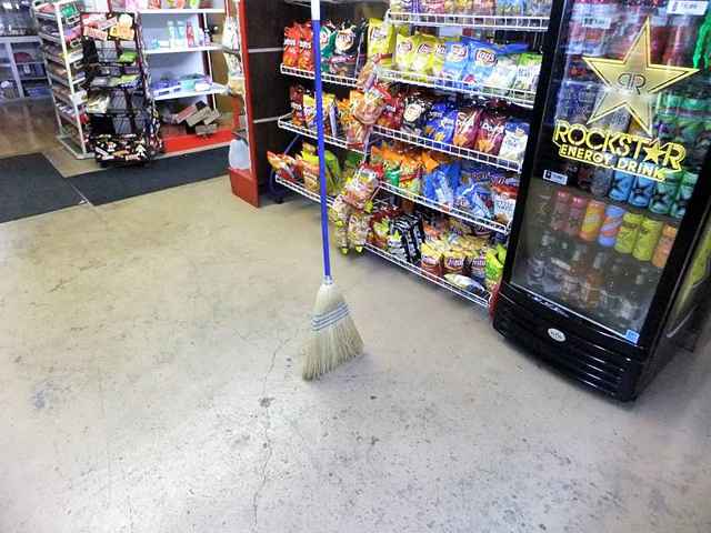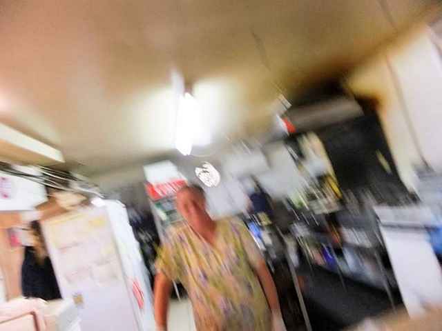 I’m pretty sure there was “something else” happening here.  When I asked the lady behind the counter about the broom just standing in the middle of the floor, she said, “Oh, that broom?  It just walks in here, and stands around, a lot…”  No, it isn’t hanging from the ceiling, or on a pole.  Just “standing there.”  I asked if I could take the lady’s picture, and she said “OK”.  No, I don’t remember shaking, or the wind blowing, or anything.  But, here’s what I got.