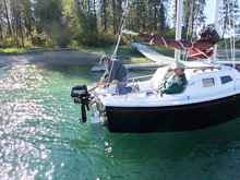 Next stop - quite unplanned - was that puddle from long ago.  Loon Lake.  The ramp was pretty deep.  The narrow channel out to the lake, not so much.  I found myself anchored with the prop down.  So, I paddled “Mobius” the hundred yards or so out to the lake.