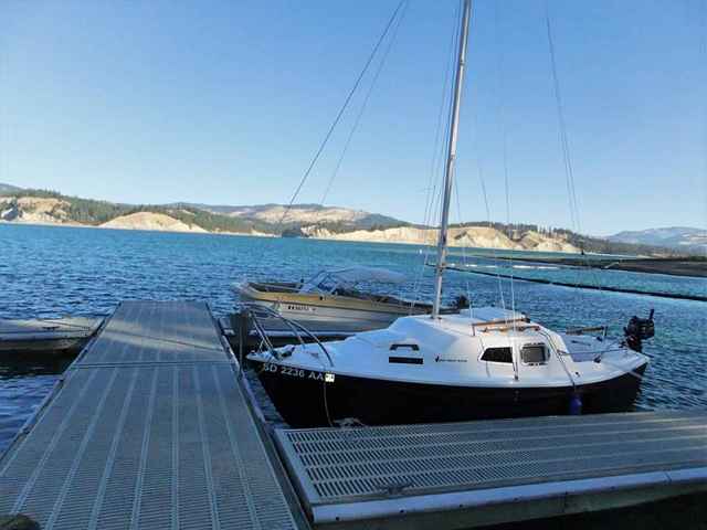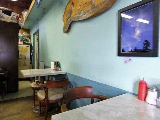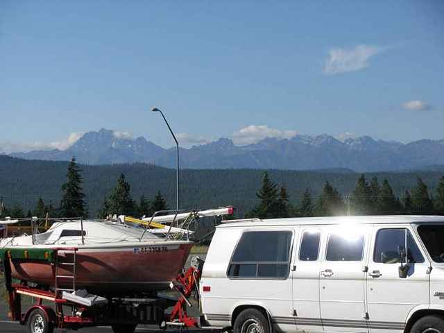 I parked the rig out back with the log trucks.  California plates and hull numbers.   Red sailboat, and a big ‘ol Chevy van.  As I went in, the place was full of people - about a 5-table joint - apparently coming from church.  Since most everybody seemed to have their “own” table, I took a “single” one in the corner.  By the back door.  The waitress was obviously busy, and steamed by me several times without stopping.  Finally, I got eye contact and she screeched to a halt in front of me.  Somewhat surprisingly, she blurted out, “You want something!?!”  I answered that I would like to order breakfast, to a quick rejoinder, “Well, you hafta’ ASK!!”   Things deteriorated a bit more, when she asked me if I wasn’t the individual towing the sailboat, now out back of her establishment.  Whereupon.