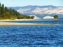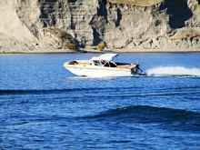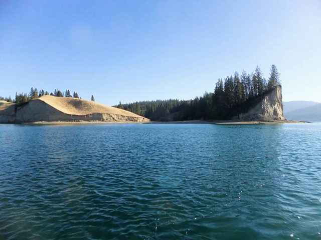Phil and I were talking about just that while having dinner at Hunters’ one and only evening-eatery.  The Hunters Inn is the local dive.  But, they sell beer and food.  And, we were both tired of what comes out of a can.  So, up the hill and across the mesa from our quite-deserted campground.  We had already been out on the lake scouting anchorages and beach camping spots much of the afternoon.  And, there’s a half-bazillion of ‘em out there.  Some of them look like this.