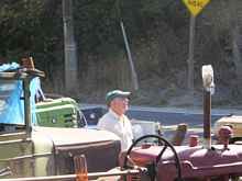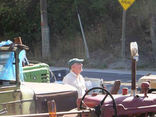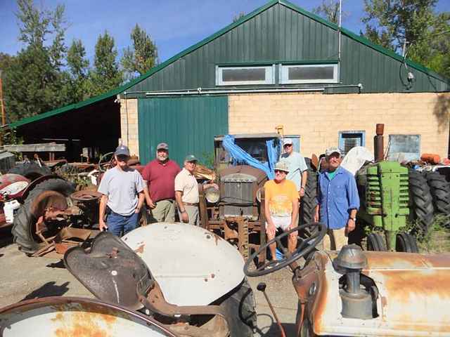 After the “universal salutation” that I find useful in these free-form expeditions, “Hey, guy!  Is that the original paint…?”  A fellow emerged from the shadows.  “Nope…been repainted…once…bought it new…”  Also in the garage was a WWII baby cat, a vintage Minn’Moline,  a collection of make & break engines, and a grand daughter.  She was on the lower end of the broom handle. Deftly sweeping the floor, while apparently not missing a single bon mot via text message.  I asked him about the tractors across the road.  His, too.  Come to find out, this is somebody else that I “know” without ever having talked to him.  Mick is the guy I sent the pictures to, of last September’s messabout gang sitting on his tractors, standing amid the ancient iron, and generally having a ball.