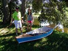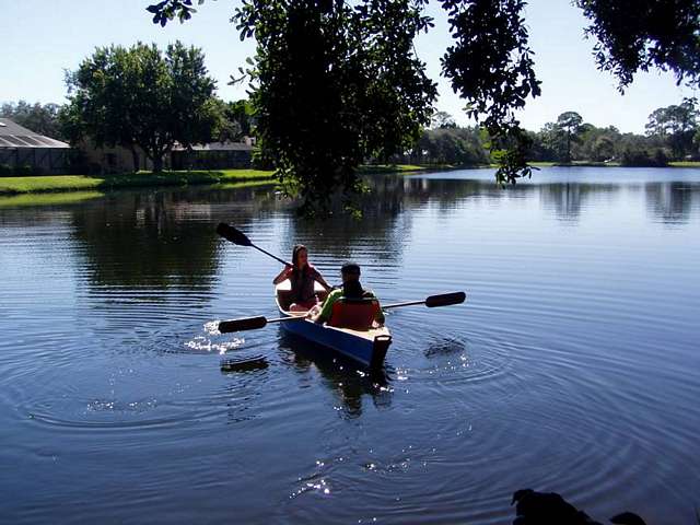 My first mate Amanda and I are about the same displacement as Tyler and his girlfriend. So off to the lake we went to test out the new boat. The water stayed on the outside and we had plenty of room. The boat paddled well and tracked in a straight line.
