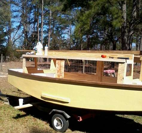 Riddle: can one person turn a SCAMP? Got a couple of 1500 lb test tie downs and lifted it just high enough to dismantle the building base. At this point, the boat probably weighs a bit over 300lbs, so not too bad.