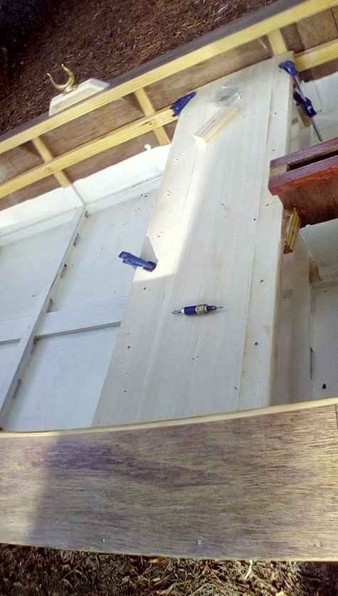 I got out and installed the aft seat and the rowing thwart as well. Also fitted the Oar Lock Risers which keep the loom of the oar from hitting the Inboard edges of the decks on the return stroke.